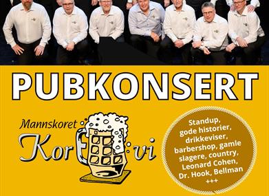 ubkonsert med Mannskoret Kor E Vi! det blir Standup,gode historier, drikkeviser, barbershop, gamle slagere, country, Leonard Cohen, Dr.Hook, Bellman +++