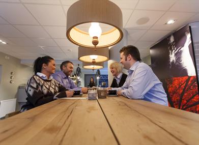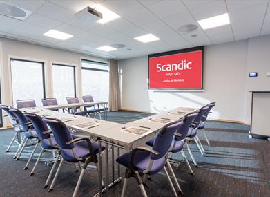 Restauranten vår serverer en stor frokost hver dag. Lunsj og middag serveres på forespørsel. I baren serverer vi lettere mat og drikke, noen ganger i selskap av livemusikk. Vi har 7 møterom med kapasitet for opptil 450 deltakere. Det største rommet, Nordic Hall, passer for møter, konserter og arrangementer. Som gjest har du tilgang til gratis WiFi.