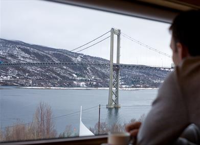 Med en nydelig utsikt over vakre Tjeldsundet og ærverdige Tjeldsundbrua, har vi gleden av å servere alle slags retter fra vårt kvalitetsbevisste kjøkken. Vår veikro har alle rettigheter og er et meget populært spisested både for den enkelte gjest og større grupper.Selskapslokaler