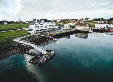 Her er det nå bygd opp et topp moderne visningssenter på land med en utstilling som forklarer havbruk inngående. De tar deg også med ut på merdekanten med RIB, du får møte laksen og de viser deg hvordan et topp moderne oppdrettsanlegg drives.