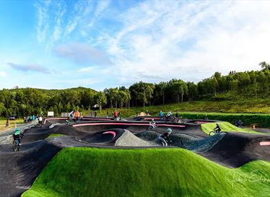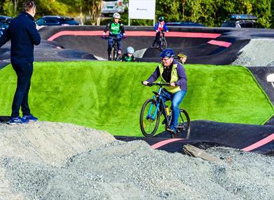 Den største banen, som dekker hele 2100kvm, er en symmetrisk bane hvor to og to utøvere sykler mot hverandre, så her blir det kanskje litt konkurranse når ungdommen utfordrer foreldregenerasjonen til kamp. I tillegg til denne finner man en pump track på 1100kvm, og en knøttetrack for de mindre barna.