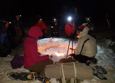 Ruten for vår kveldstur går opp i dalføret og inn i mørket. Uten trafikk, gatelys og trådløs internett, med kun knitringen fra et bål, kan du koble av fra resten av verden og nyte stjernehimmelen. Er du heldig kommer nordlyset frem og viser all sin prakt.